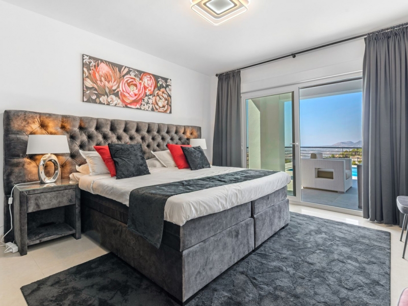 Als je deze villa binnenloopt, word je meegesleept door de visuele indruk dat deze in de zee is gebouwd. De kamerhoge woonkamer met glazen wanden biedt een ongekend luxueus uitzicht op de zee en de kust. Bijna elke kamer in deze villa biedt een spectaculair en ongeëvenaard uitzicht op zee. Wij geloven dat deze luxueuze villa bij de eerste blik uw hart zal veroveren en u het ultieme luxe gevoel zal geven. Het samenspel van traditioneel en modern in deze luxe villa is uitzonderlijk qua design, smaak en luxe!