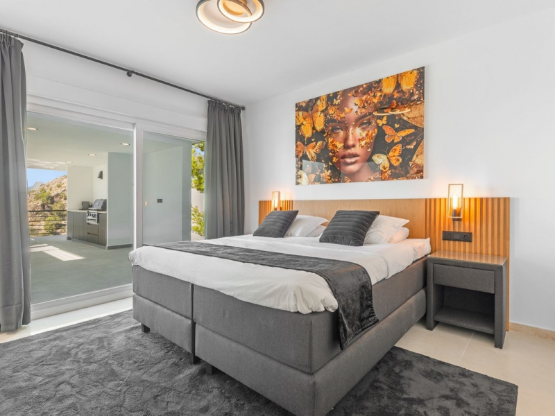 Het appartement zelf beschikt verder over een slaapkamer, een badkamer met inloopdouche en een ruime woonkamer met veel natuurlijk lichtinval. De open keuken is voorzien van een prachtige keukeninrichting met een eiland, veel werkruimte en alle benodigde inbouwapparatuur zoals: met een spoeleiland en kastenwand met inbouwapparatuur, waaronder een combi-oven, combi stoomoven, vaatwasser, inductiekookplaat, gasfornuis, afzuigkap, koffiemachine en koelkast en vriezer. Daarnaast beschikt het appartement over een hele mooie terras met een prachtige uitzicht naar zee en de bergen. Het appartement beschikt een hele grote gemeenschappelijke Zwembad en een kinderbad.